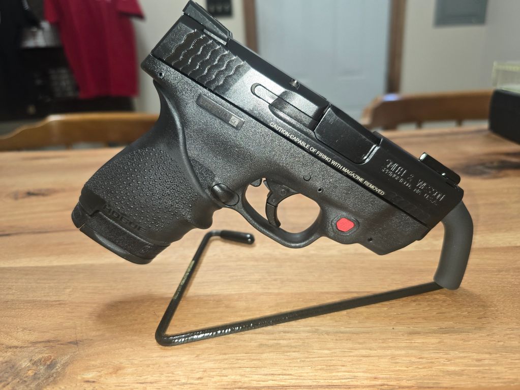 No safeties, TG-H3 fiber optic sights with red Crimson Trace laser.